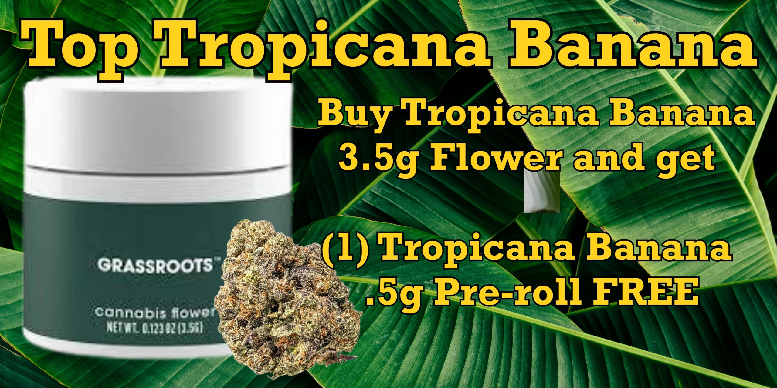 The king of the bunch is here. Tropicana Banana reigns supreme with its bright, energizing flavor and signature Sativa vibes. Celebrate the top banana strain with a little something extra — your pre-roll’s on us.